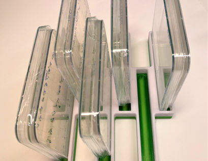 The holder is designed to keep vertically Petri plates, we need it to grow Arabidopsis seedlings on the surface of the medium.